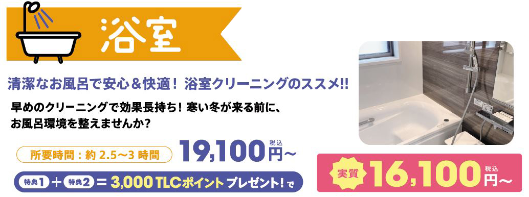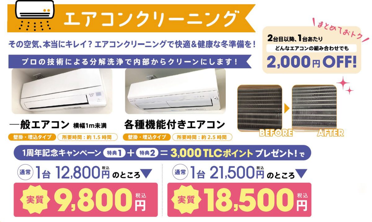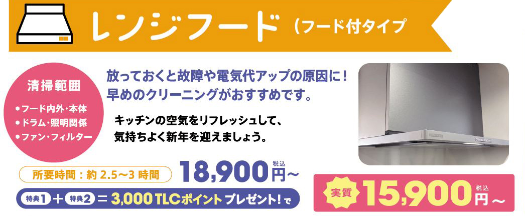 一番人気のエアコンに加えて、レンジフード、浴室の水まわりクリーニングの